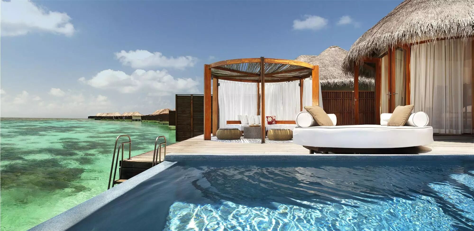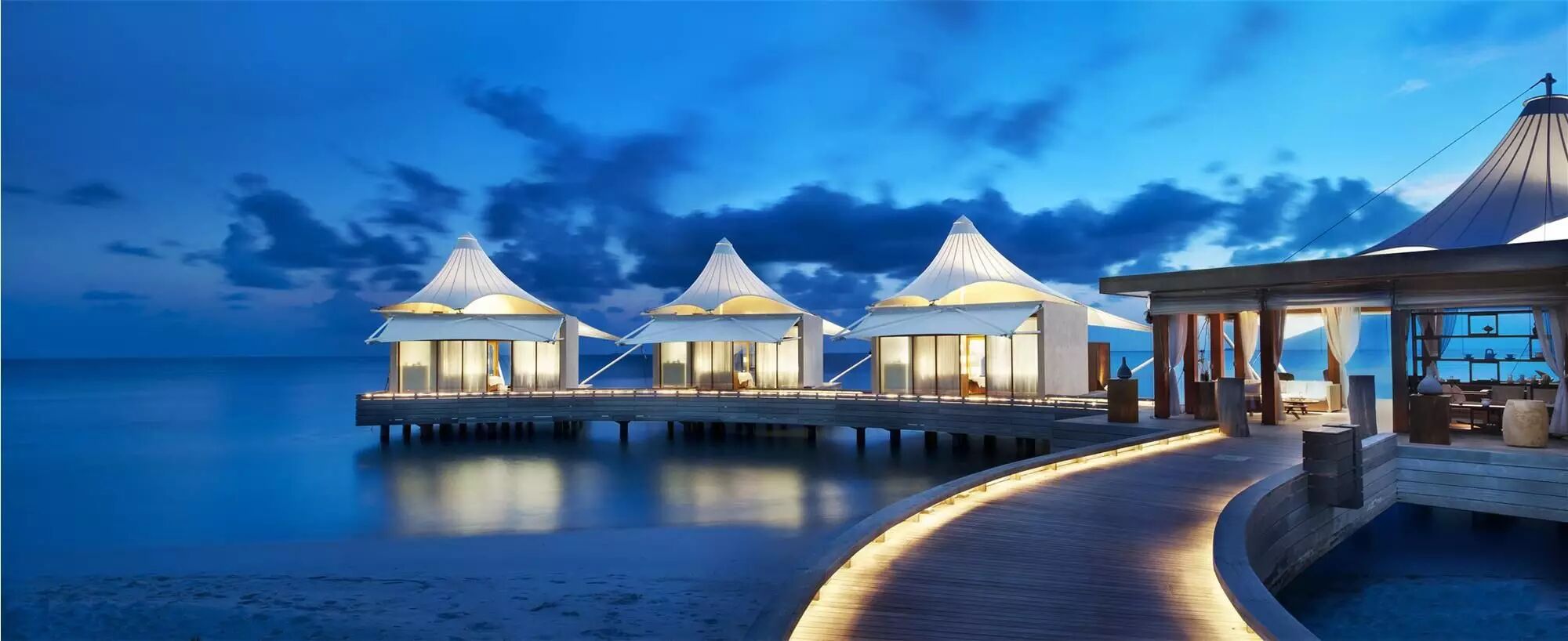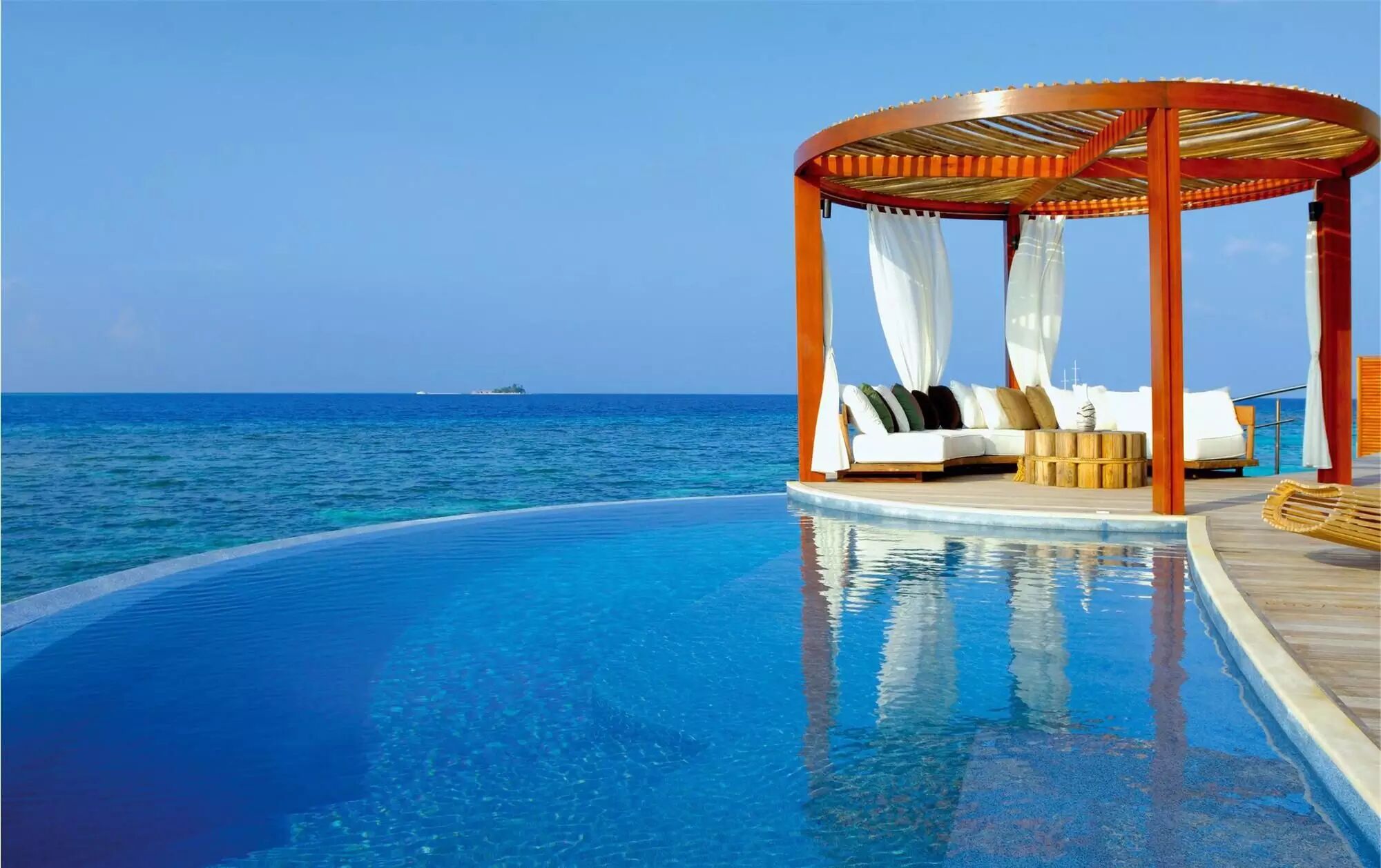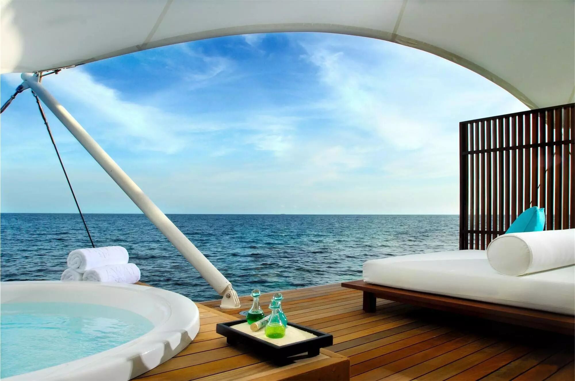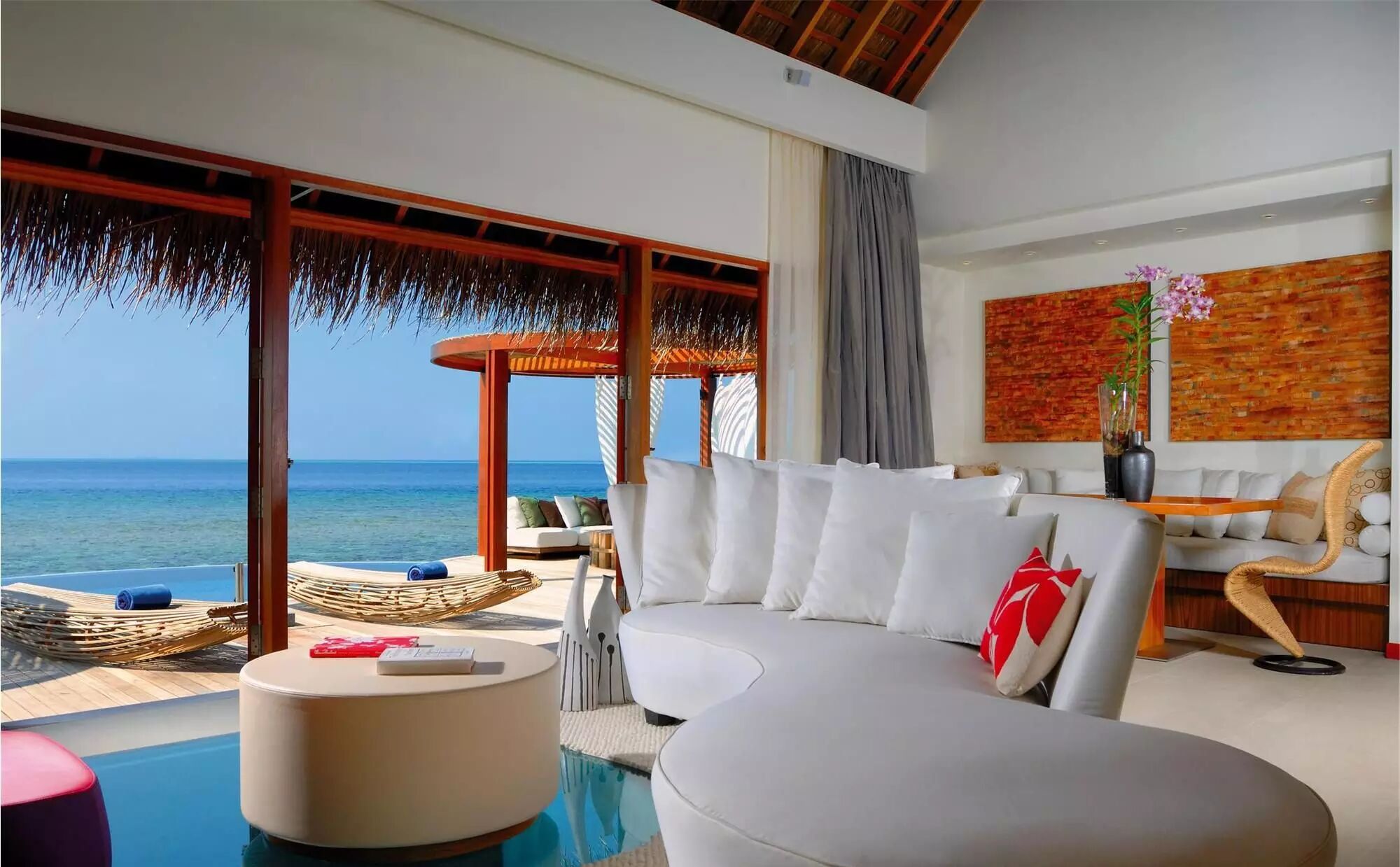马尔代夫 W 水疗度假酒店位于怀斯图岛上,藏身于马尔代夫环礁之间,地处北阿里环礁中心,马尔代夫首都马累以西。 从马累乘坐水上飞机,沿途欣赏美不胜收的景色,在蔚蓝的印度洋上航行 25 分钟后,即可抵达酒店。